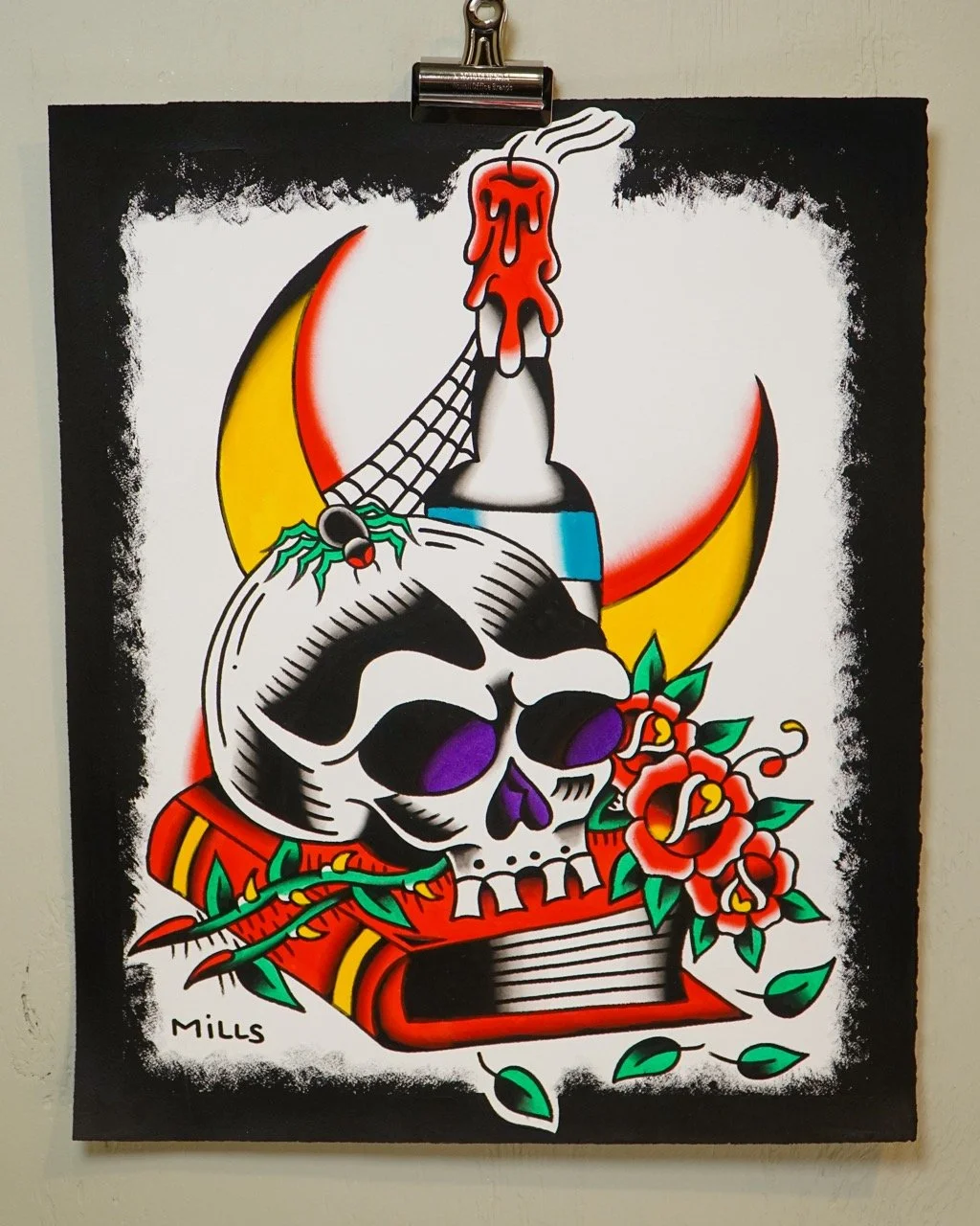 James Mills tattoos out of Apple Tattoo in Farmington, NH. Raised as a NH native, with a focus on mainly traditional tattoo art, James is more than happy to help preserve tattoo history with his own spin.