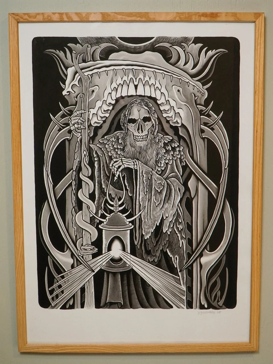 “KEENAN BOUCHARD is a non-synthetic sentient humanoid (so he has been led to believe...) Though memory can't be a thoroughly reliable database for information he believes his life cycle began in the alleged u.s. territory of Vermont in the year 1988. The drawing began "not long" after that point in what's currently understood as linear time. The tattooing began in 2009, at which point he began to traverse our terrestrial home planet in search of knowledge and experience which brought him to Austin Texas in 2017. A few earth years later the decision to move back to New England was made with inborn surety. Eventually BRUNSWICK, MAINE became the enduring home of REPLICANT TATTOO.