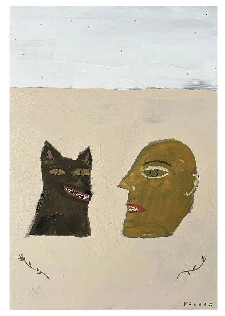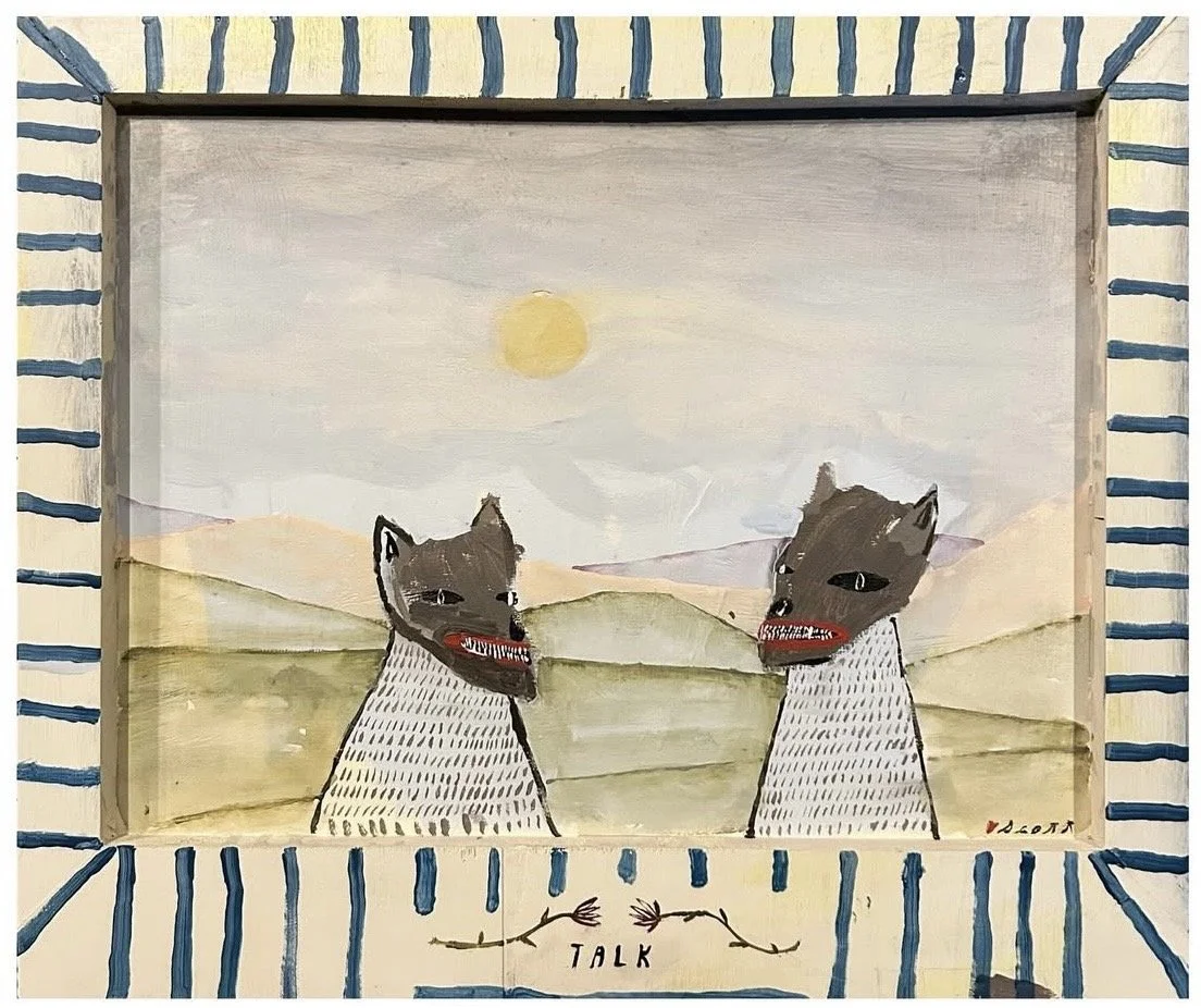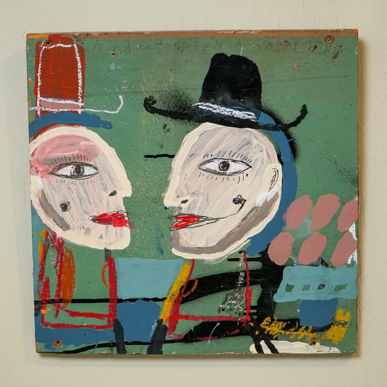 Working at times within the traditions of Folk and Outsider art, Ackerman frequently utilizes unorthodox materials and found objects in his practice. As a self-taught artist he considers his approach as primitive and unconventional, rejecting the boundaries of traditional culture. He explains his process is driven by intuition and instinct, using acrylic, pencil and spray paint for their immediacy.
